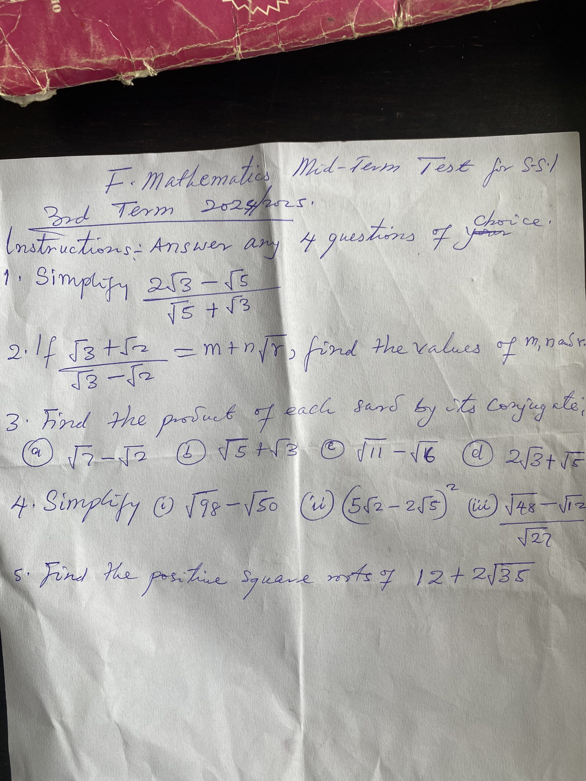 Futher mathematics for SS1 Third Term Mid term test 2025 Leave a Comment / By admin / June 13, 2025 Welcome to your Futher mathematics for SS1 Third Term Mid term test 2025 Further mathematics questions None